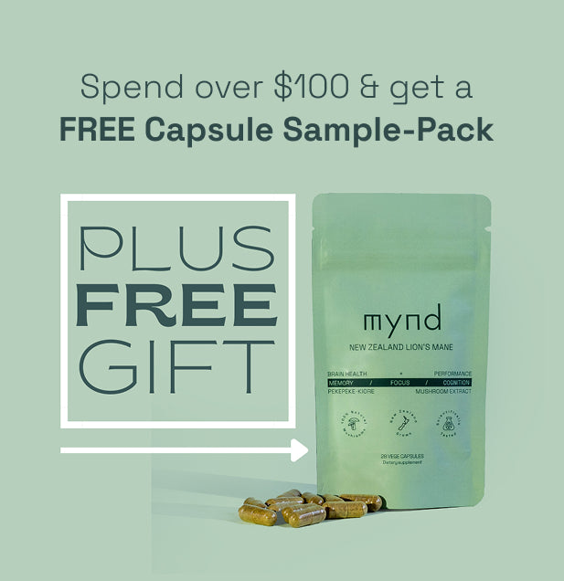 Mynd’s New Zealand Lion’s Mane (Pekepeke-Kiore) is independently tested for bioactive compounds: beta-D-glucans, Erinacines, and Hericenones that support brain health, function, and neuroprotection.